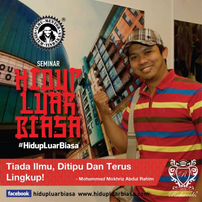 Kalau dahulu pendapatan saya hanya RM300 sebulan, Alhamdulillah hasil perkongsian ilmu daripada Dr. Azizan Osman, pendapatan saya sekarang sekitar RM3500-RM5000 seminggu. Tidak pernah langsung saya dek fikiran saya. Saya juga diajar erti konsep sebenar untuk berniaga dimana berniaga bukan semata-mata berobjektifkan keuntungan tetapi ia adalah cara kita untuk menyelesaikan masalah, berkongsi dan menambah nilai hidup orang lain. Segala ilmu yang disampaikan Dr. Azizan Osman bukan hanya omong kosong, ianya adalah pengalaman jatuh bangun beliau sendiri. Jangan hadir program Hidup Luar Biasa ini jika anda rasa kehidupan anda sudah cukup kaya, bahagia dan berjaya.